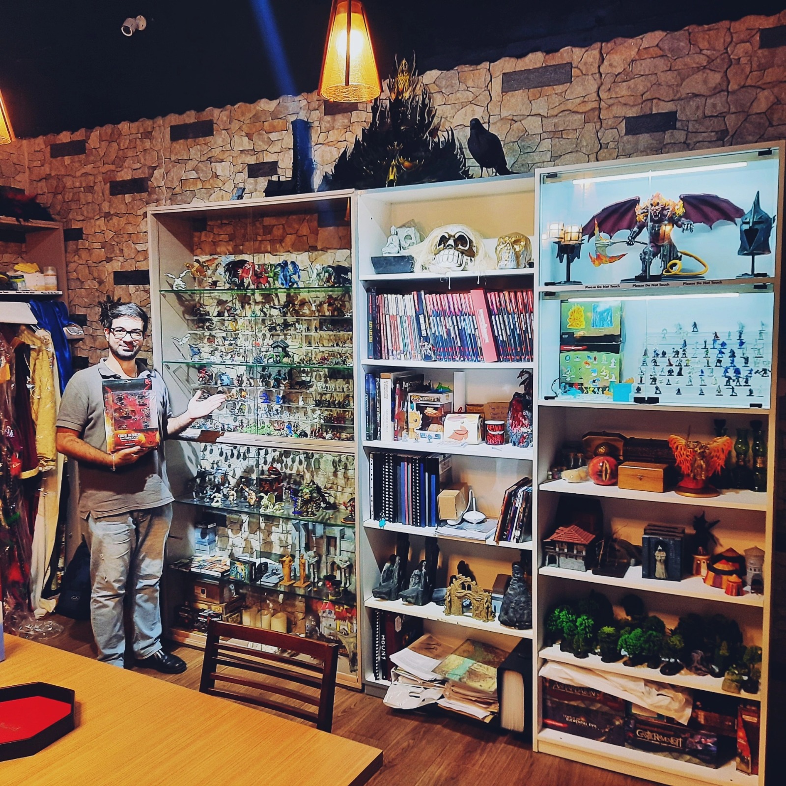 Ali: Wir sehen hier in Beirut ganz klar, dass die Leute lieber am Spieltisch als im virtuellen Raum spielen. Von den zahlreichen Spielgruppen, die wir hier im Multiverse leiten, wollten nach COVID nur drei weiterhin online spielen. Die Spieler schätzen sehr, was wir ihnen in unserem Rollenspielzimmer bieten. Die Regelwerke und Abenteuerbände (auf Englisch, da es keine arabischen Übersetzungen gibt), die ihnen zur Verfügung stehen, die Verkleidungen und natürlich die soziale Interaktion. Die Spieler lieben auch die dreidimensionalen Spielbretter - wenn sie auf einer flachen, gezeichneten Karte spielen, fehlt ihnen das Gefühl der Immersion. Im Multiverse haben sie eine große Auswahl an Miniaturelementen, um ein Setting nachzustellen: Figuren, Gebäude, Bäume, usw.